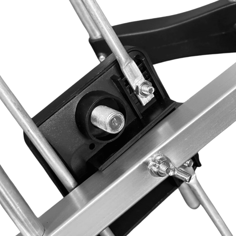 Fabricada en aluminio resistente, está pensada para soportar condiciones exteriores adversas sin perder eficiencia. Su sistema de montaje tipo abrazadera permite una instalación rápida y segura en diferentes superficies, haciendo de esta antena una opción práctica y duradera.