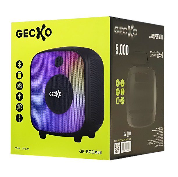 Bocina Gecko Boom 66 Party Kube – 50W RMS / 5,000W PMPO con Bluetooth y TWS GECKONECT