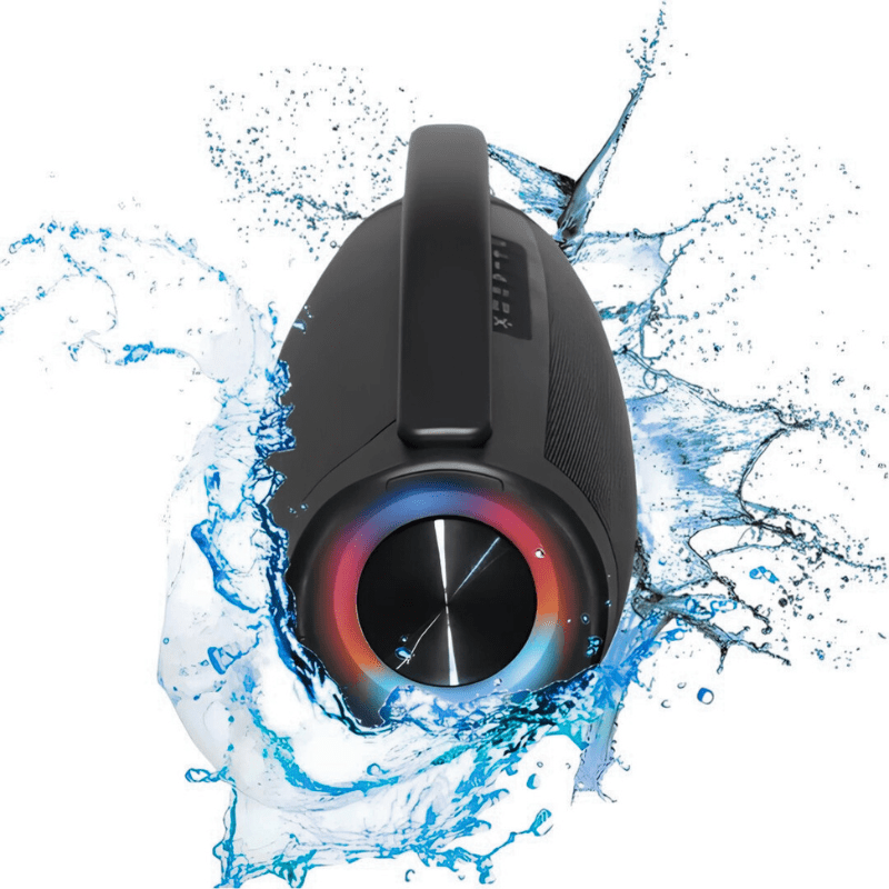 Su resistencia al agua (IPX4) la hace perfecta para fiestas en la piscina, la playa o reuniones al aire libre, ya que soporta salpicaduras y condiciones húmedas sin comprometer la calidad del sonido.