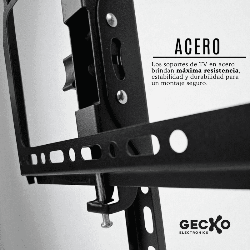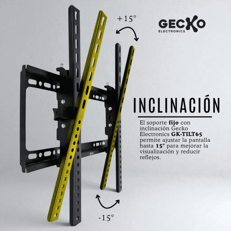 El Soporte Fijo con Inclinación Gecko es la solución ideal para quienes buscan funcionalidad, seguridad y un diseño elegante que optimiza el espacio y mejora la experiencia audiovisual.
