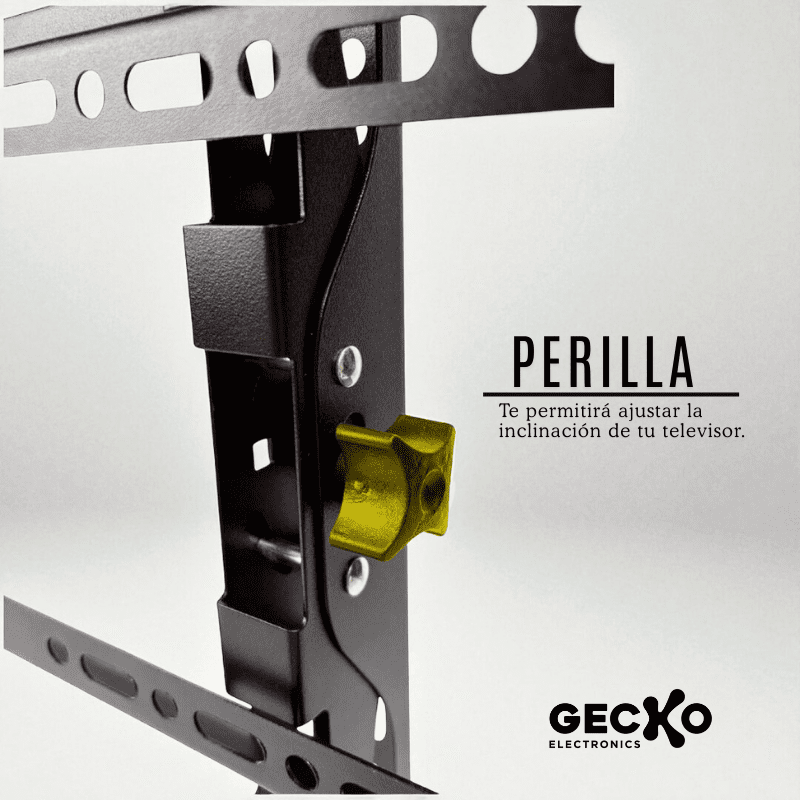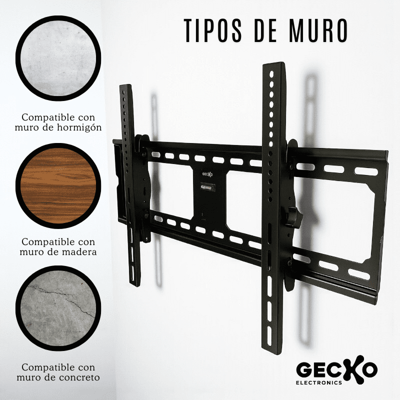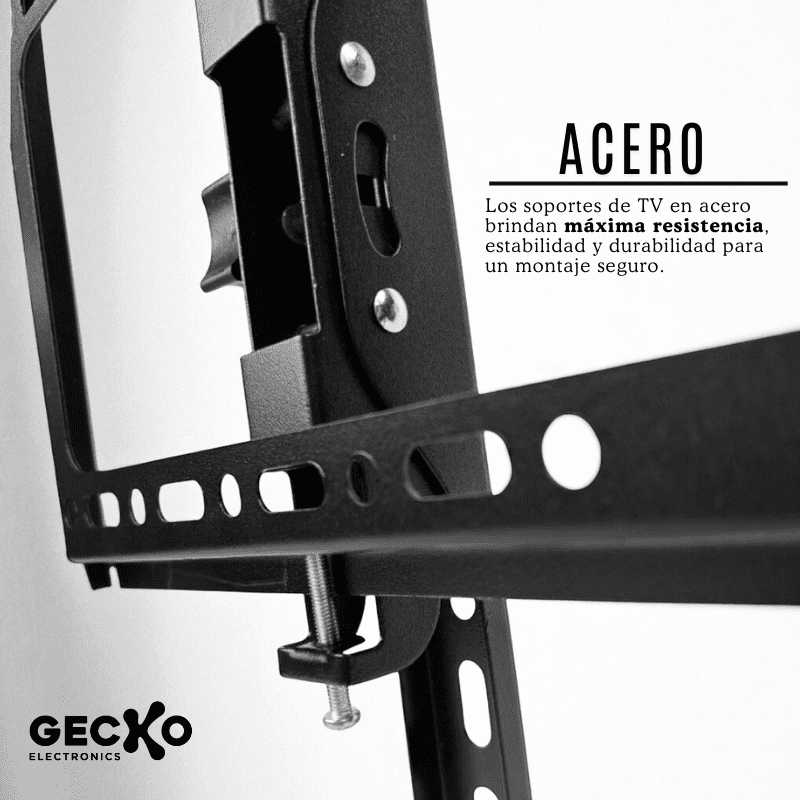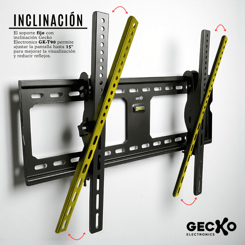Perfecto para salas, dormitorios u oficinas, el Soporte Fijo con Inclinación Gecko es la opción ideal para quienes buscan seguridad, funcionalidad y diseño en un solo producto.