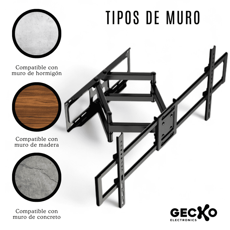 Soporte Articulado Gecko GK-ART90, diseñado para adaptarse a una amplia gama de televisores y brindar la mejor experiencia visual en cualquier espacio.